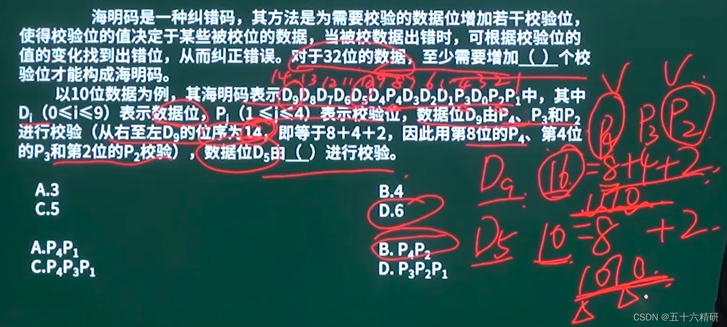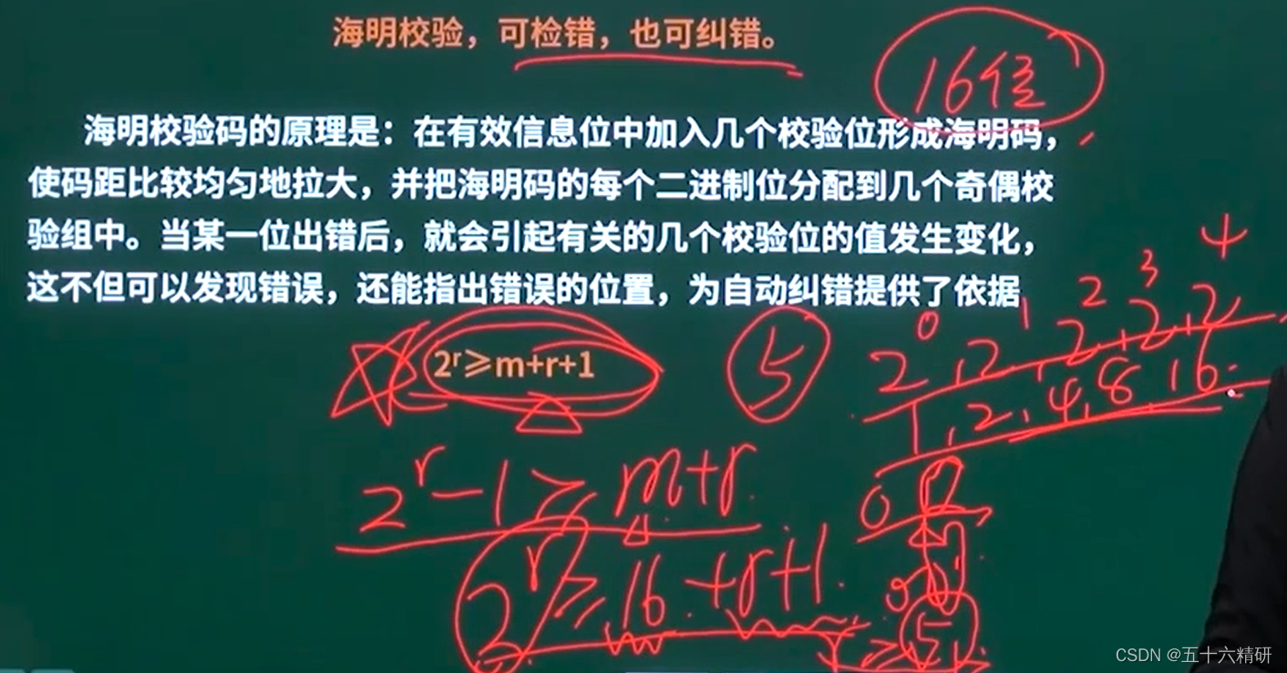 重点掌握公式“2^r=m+r+1”就可以了,其中m是有效信息位,r是我的知道有效信息位之后要求得的校验位。