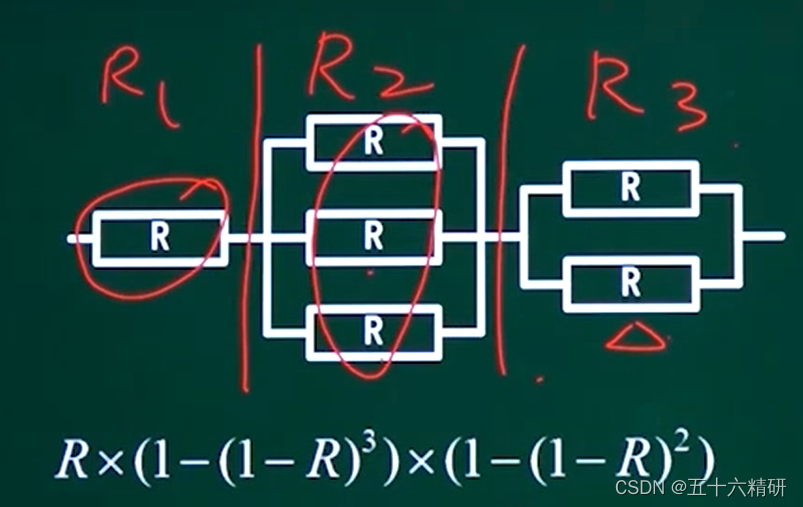 并联:1-(1-R),三个就是(1-(1-R))^3