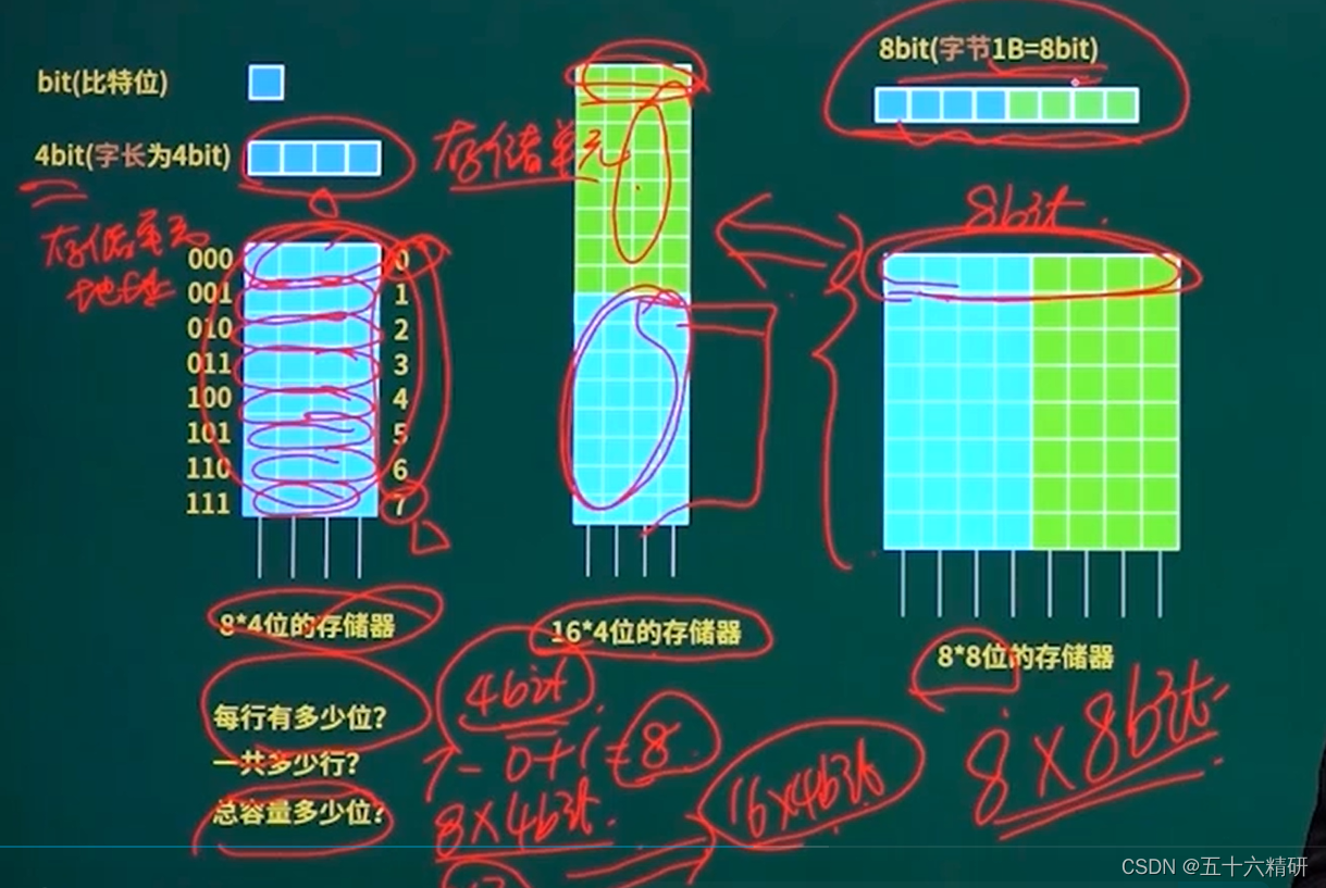 公式:总容量=存储单元个数*编址内容