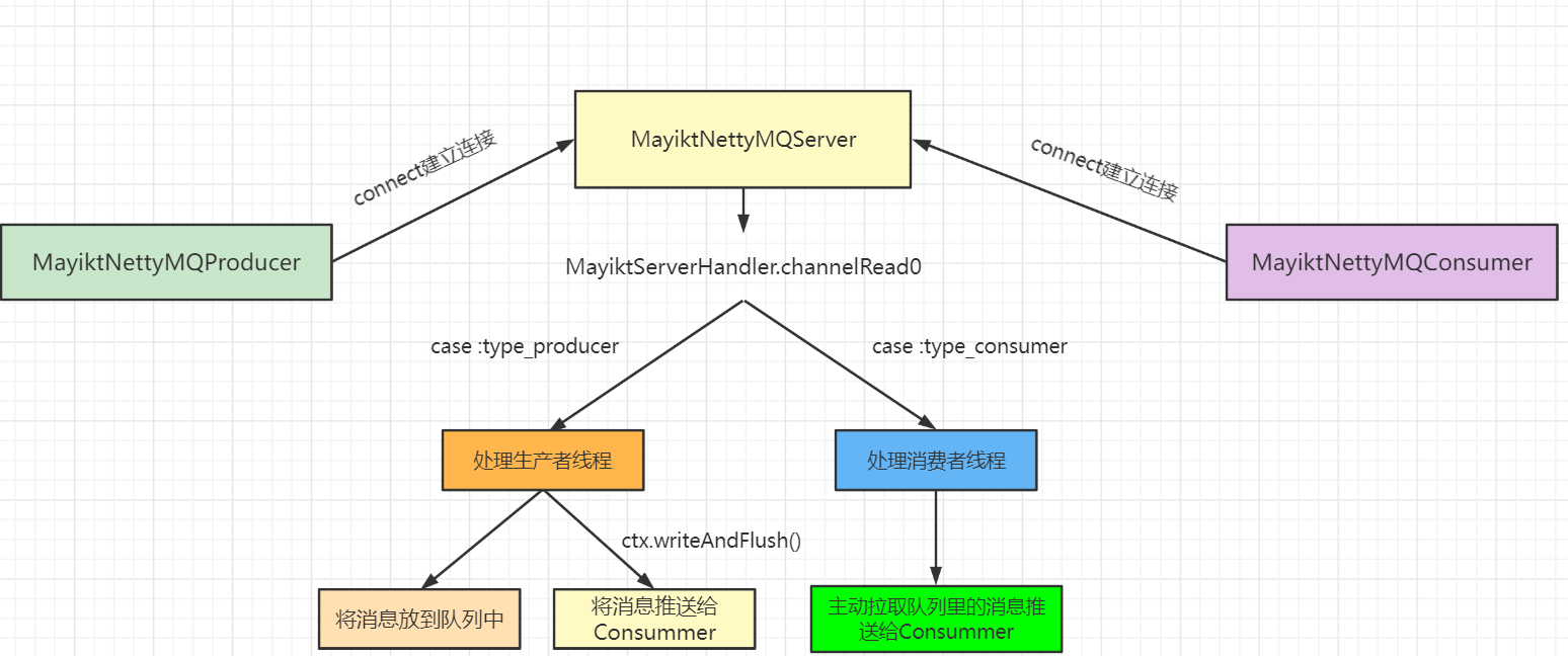 通过两种方式手写一个消息队列 文章目录1.基于多线程的方式实现MQ(极简纯享版)2.基于网络通讯的方式实现MQ参考每特教育蚂蚁课堂1.基于多线程的方式实现MQ(极简纯享版)MQ就是在消费者服务和生产者服务传递信息的通道,生产者向队列中投递消息,然后消费者过来取。所以我们可以这样设计,用一个队列作为中间件,然后开启两个线程,一个是生产者线程,一个是消费者线程,生产者线程向队列中插入json串,消费者线程过来取这个就是一个简单的MQ的实现。 private static LinkedBlockingDeque<JSONO