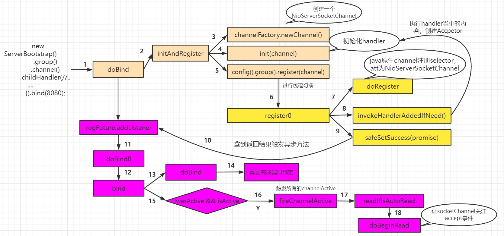 万字简析Netty启动流程源码 文章目录前言0.NIO中服务器是如何启动的1.Netty启动流程2.initAndRegister方法2.1 init2.2 Register3.启动流程阶段性总结4. NioEventLoop分析4.1NioEventLoop的组成4.2 selector的创建4.3 两个selector成员变量5. NioEventLoop线程何时启动6. eventLoop wakeup 方法7. EventLoop进入select分支7.1讨论什么时候进入select方法7.2进入select方法7.3 Netty