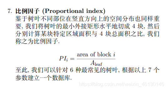 他们为了将任意一片树叶都可以用他们建立的模型求解出来,他们设置了一组参数,并且建立数据集以来比较待分类树叶。他们用了7个参数。