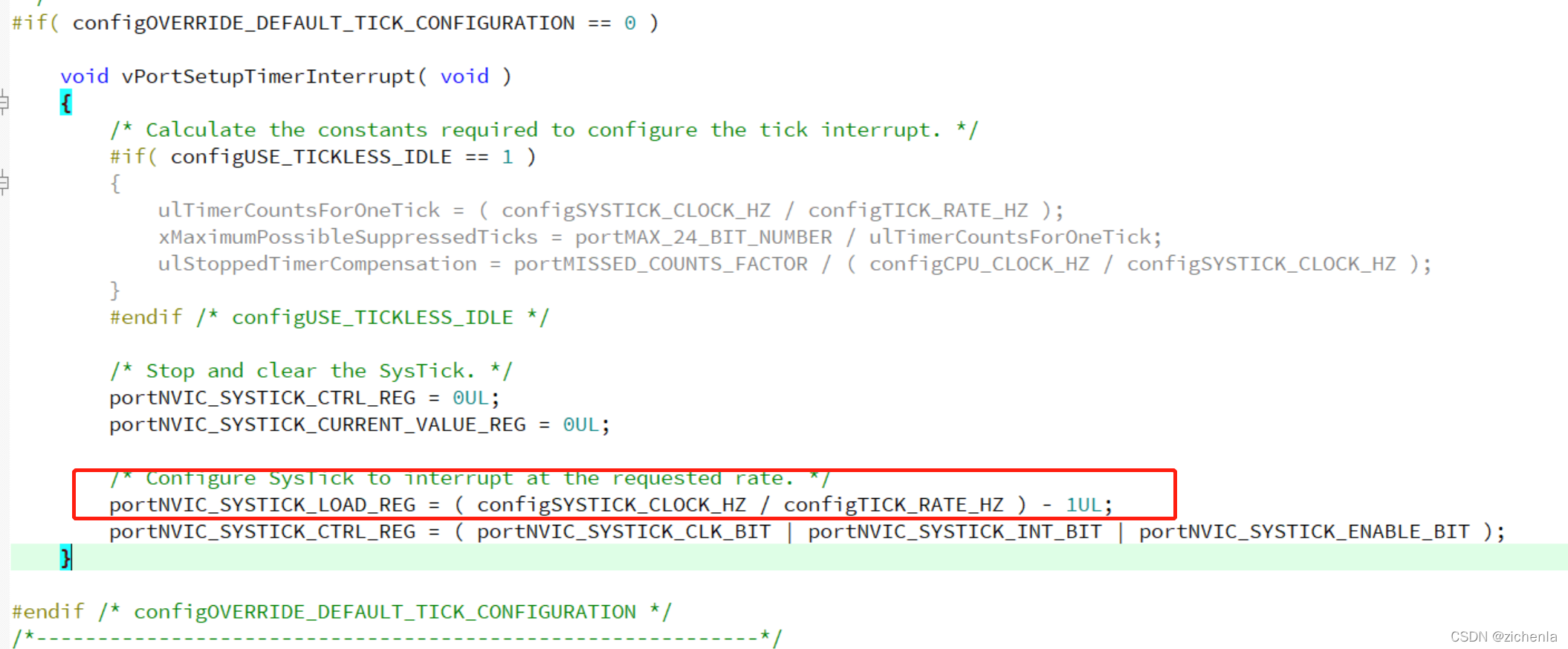 在检查许久后发现问题在configSYSTICK_CLOCK_HZ,这个定义上。原先对于这个宏的原始理解就是,首先只针对Cortex-M可用,然后就是如果Systick和系统时钟一样就无须定义,不一样时定义成Systick的时钟频率,然后移植时就是索性使用了以下方式: