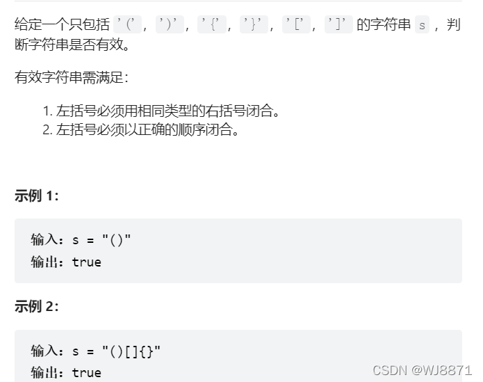 思路:遍历字符串所有元素,若为左括号,则入栈,如果为右括号,则直接获取栈顶元素,看是否匹配。