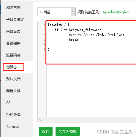 如果采用宝塔面板进行部署,则修改nginx相关配置即可