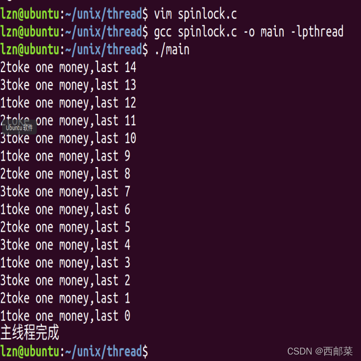 申请一个自旋锁是pthread_spinlock_t lock。使用的函数有pthread_spin_lock(&lock),这个是上锁。pthread_spin_unlock(&lock)这个是给lock解锁。sched_yield()是自身线程放弃cpu的使用权,让一个准备好的线程占用cpu。