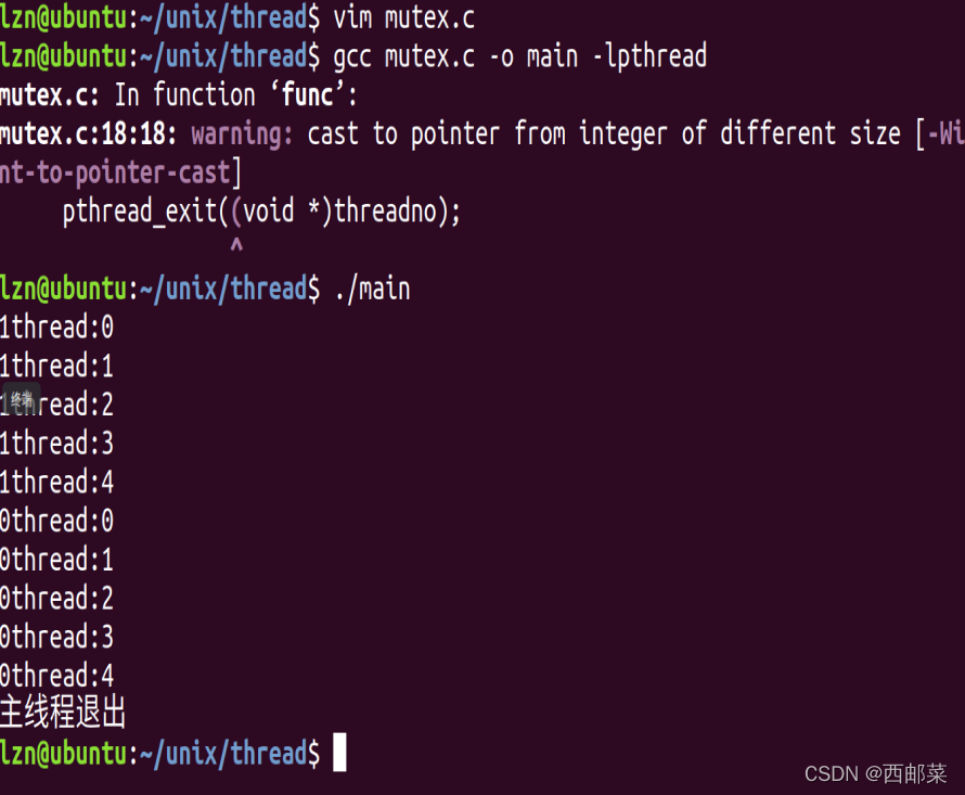 printf("%dthread:%d\n",threadno,i);