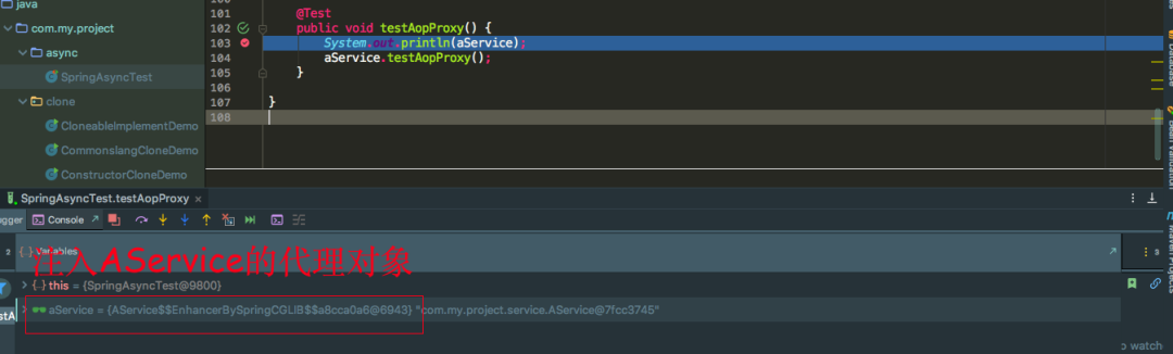 我们发现AService的testAopProxy被AOP代理了,看看传入的匿名内部类的getEarlyBeanReference返回的是什么对象