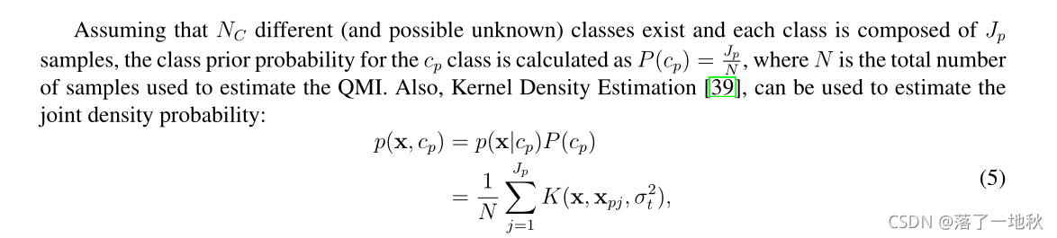 假设存在不同(和可能未知)的类,且每个类由Jp样本组成,则Cp类的类先验概率计算为P(cp)=Jp N,其中N是用于估计QMI的样本总数。