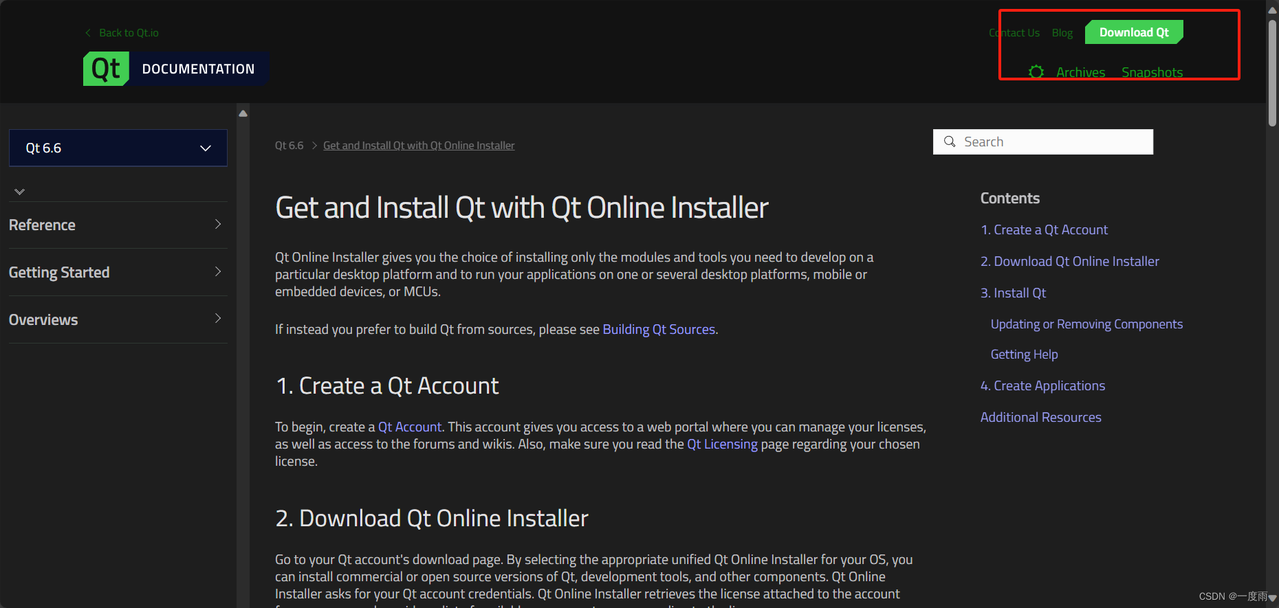 可到官网Get and Install Qt with Qt Online Installer | Qt 6.6左上角下载。