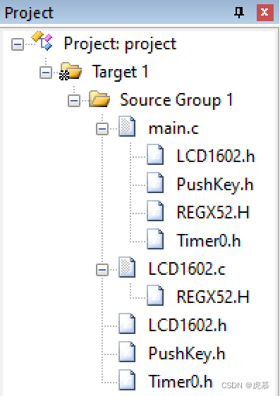 LCD1602.h、LCD1602.c与第12节的实验代码相同。PushKey.h、Timer0.h与13.2“温度报警器”的代码相同。