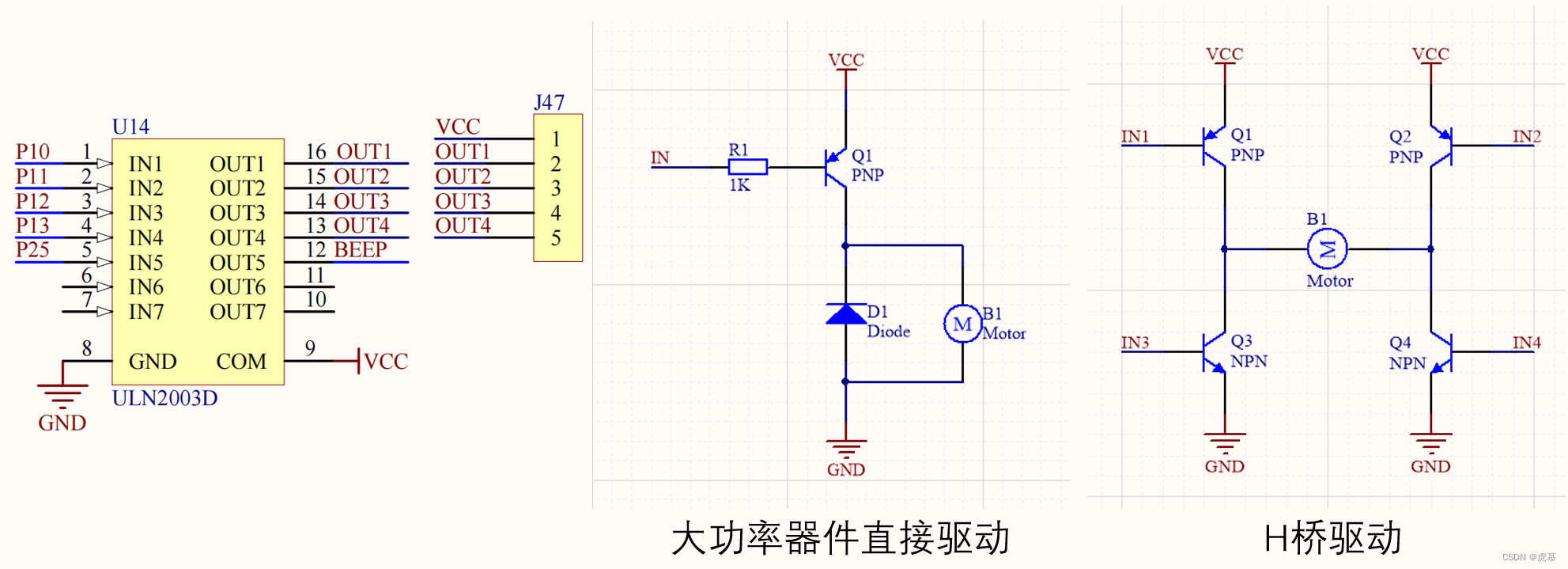 - 当然,开发板上采用的驱动芯片ULN2003D,在之前的“9蜂鸣器”一节已经介绍过。