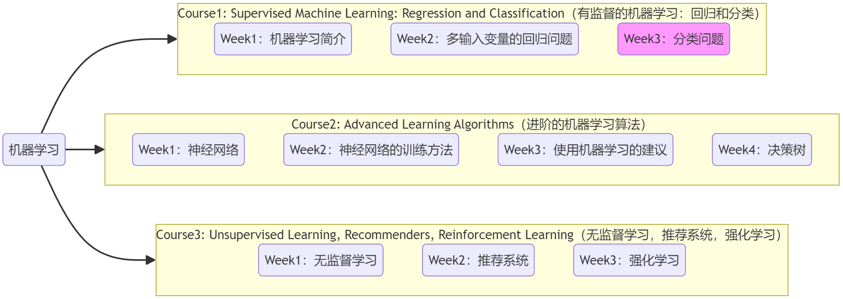 - 本篇笔记对应课程 Course1-Week3(下图中深紫色)。