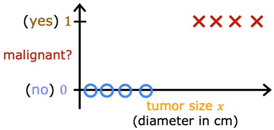 - 是否为恶性肿瘤?(0/1)下图与Week1“肿瘤分类”示意图的不同,仅在于下图画出了实际的纵轴。