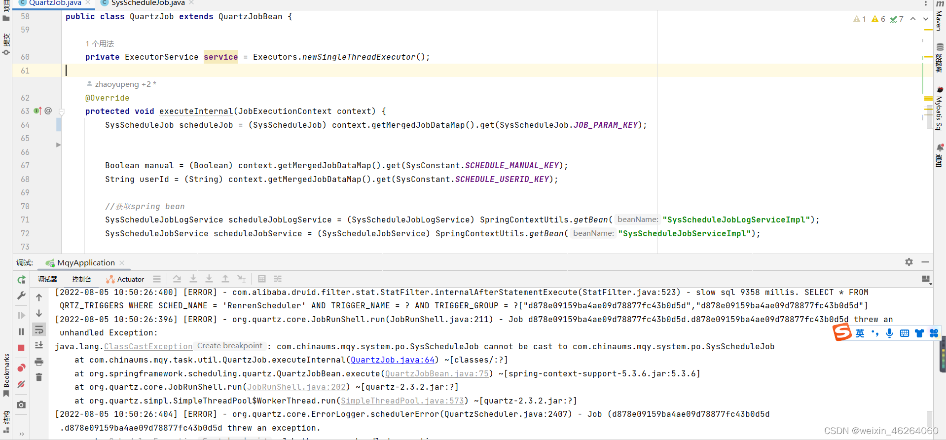quatzy获取参数强转异常,devtools类加载机制问题 目的是实现热部署,这样在重启的时候只需要释放掉restartClassLoad加载的class文件也就是自己编写的对象。很明显这里findClass(name)先从自身加载,加载不到再通过base加载。熟悉spring的你肯定又猜到了,没错就是这个devtools依赖惹的祸。先从自身查找,没有的话再去父类查找的加载顺序破坏了双亲委派机制。jdk自带的一些class就不用重新加载了,实现了快速部署。此时默认你了解jdk的类加载机制包括双亲委派机制,猜到了吗,他们的加载器不一致。2.使用同一个类加载器加载。..