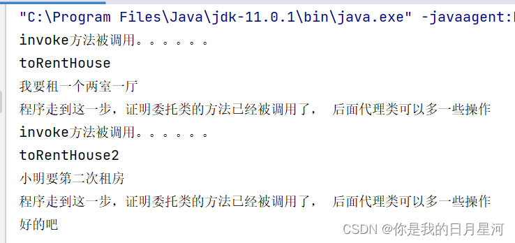 //下面我们还需要调用 目标对象中的 toRentHouse方法 ;通过反射中提供的invoke方法,调用指定对象的