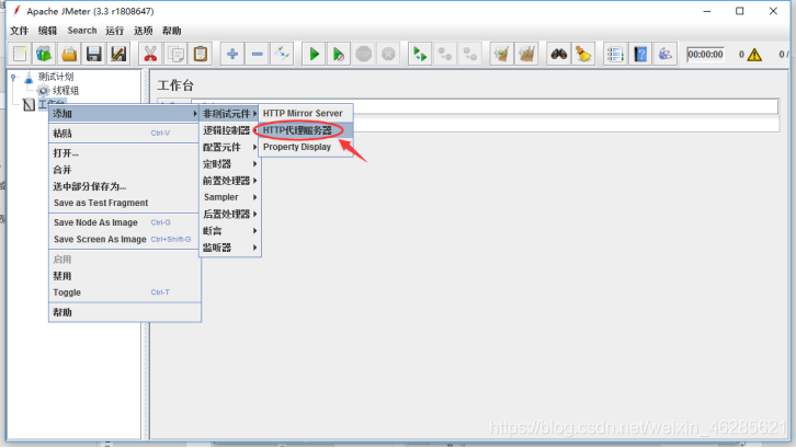 启动jmeter代理,浏览器设置代理后,浏览器的操作就会记录在线程组里