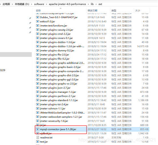1、把mysql驱动放在jmeter4.0\lib\ext这个目录