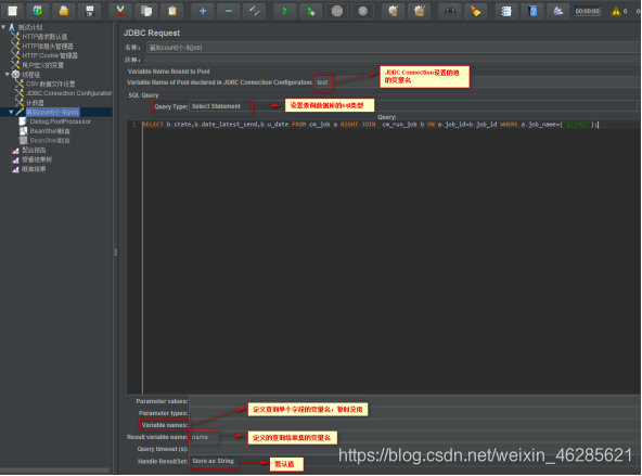 String state = vars.getObject("name").get(0).get("state").toString();response=prev.getResponseDataAsString(); // 通过变量name和state获取数据库请求响应结果的state字段信息