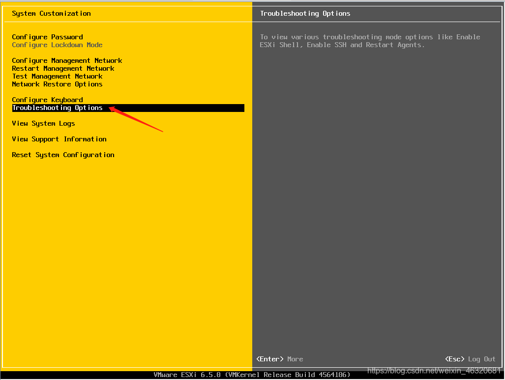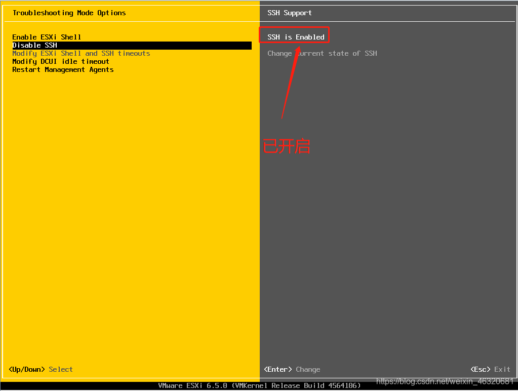 1、选择Troubleshooting Options,然后回车 2、开启ssh 3、按Esc键返回主界面(可选操作)
