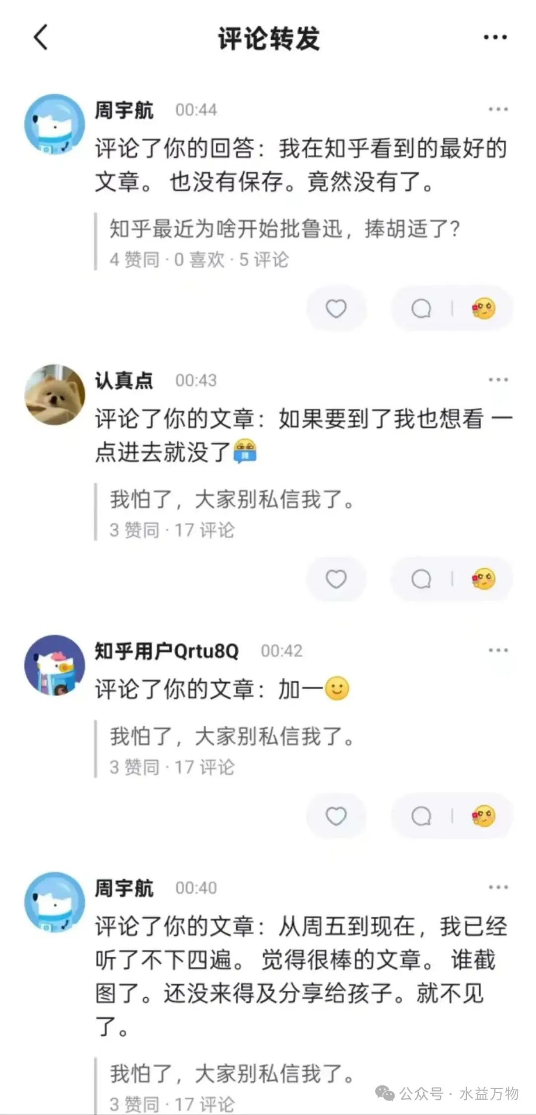 文章不是第一次被删,也不知道是不是最后一次被删。所以我打算发在微信公众号上,我的微信公众号是「水益万物」这四个字,我会一直分享我的写作,谢谢大家的支持。但是毕竟我年龄太小,很多内容的写就,是不足的,而我会用我的努力补足。
