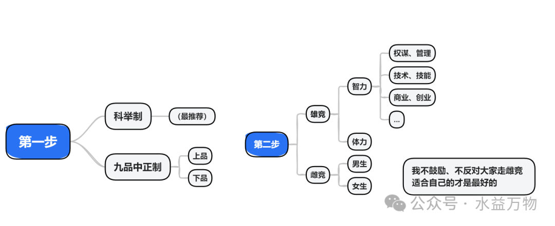 值得注意的是,能走科举制的,也能走九品中正制。但是只能走九品中正制的,很难走科举。毕竟学历、专业摆在这。科学技术的发展使得技术工作不再是古代「君子不齿」的行业。张雪峰的视频是很好的,补足了很多人的信息。在中国有一个小康、中等偏上、稳定的生活,最好的道路就是走理工科的「科举制」,因为努力真能赚到钱,有才华真的有用。所以鼓励学理工科而不是文科的另一层意思是:「理工科学生可以①②都走,但是文科基本只能走②」。