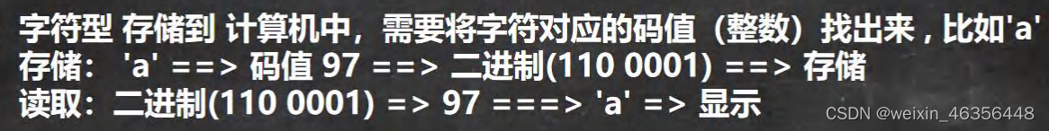 2. 本质是一个整数,输出的是Unicode码对应的字符,可以赋给char一个整数,输出时会输出对应的字符(97—‘a’),char可以进行运算,相当于一个整数。