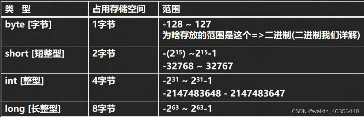 2. 每个整型有固定的范围和字节长度,不受具体操作系统的影响,以保证Java程序的可移植性