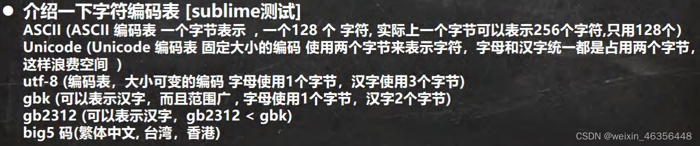 (3). UTF-8:改进的Unicode,目前使用最广,是一种变长的编码方式,使用1~6个字节表示符号,字母1字节,汉字3字节