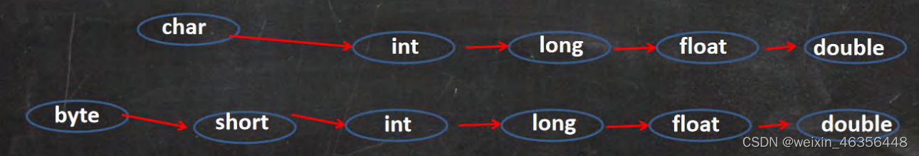 1. 自动类型转换:精度(即容量)小的类型自动转换为精度大的类型