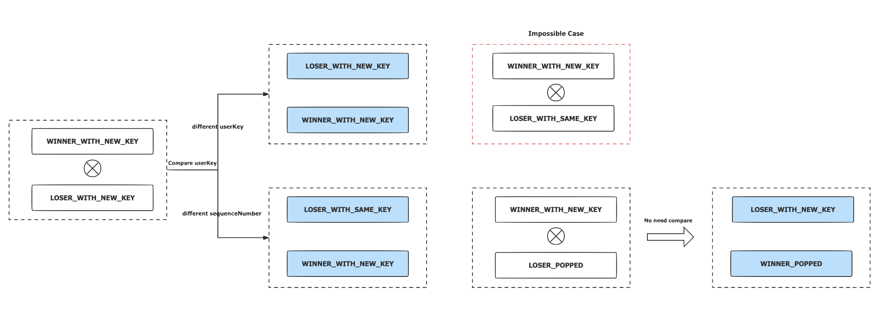 - WINNER_WITH_SAME_KEY:与上一次的全局 Winner 使用相同的 UserKey,但 SequenceNumber 更大;