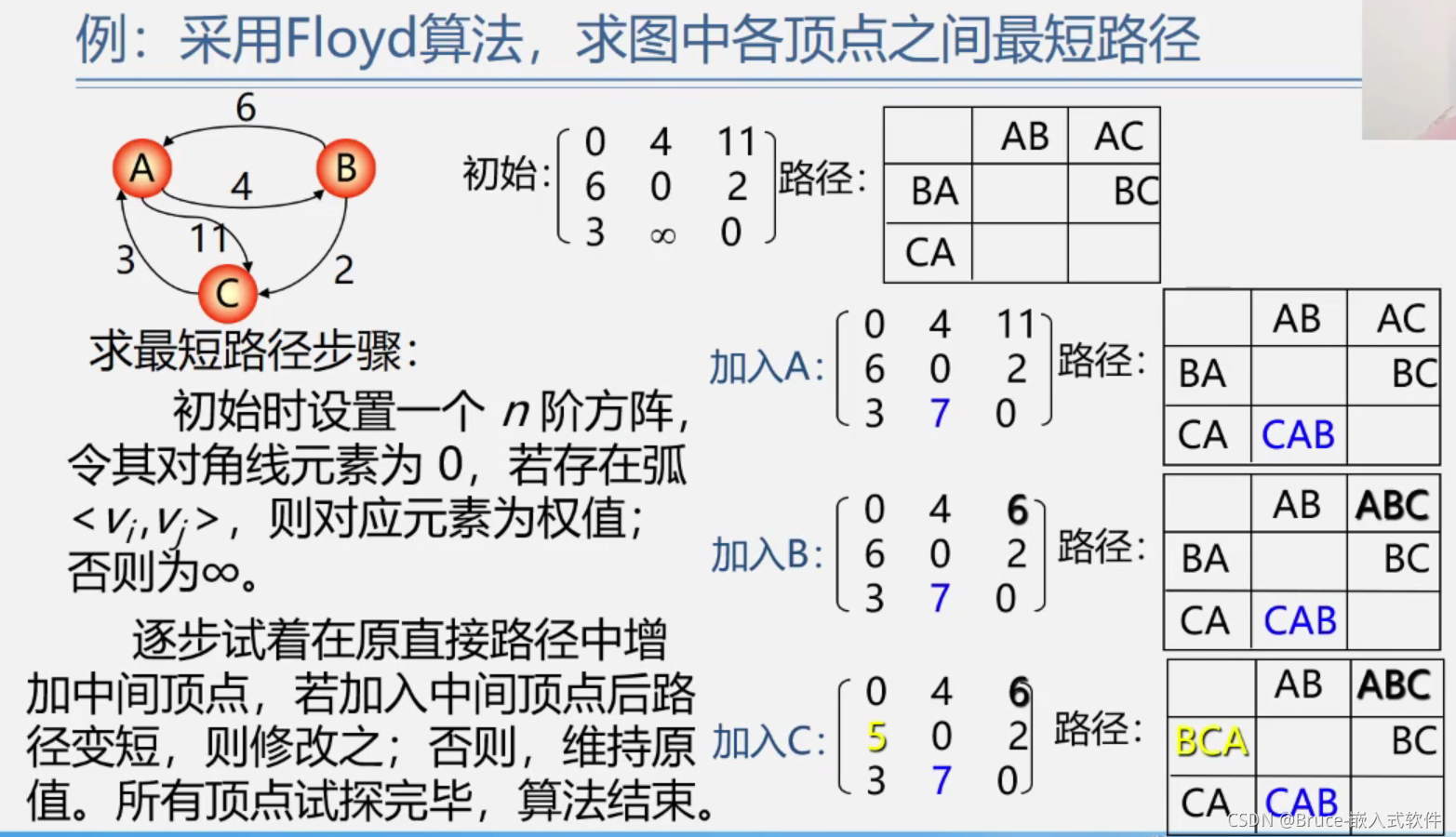 Floyd算法:顶点vi到vj之间的最短路径;