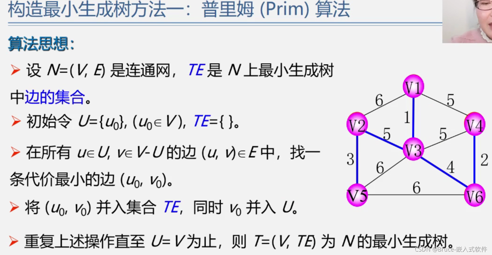 初始u为v1,找v1的权值最小的边,<v1,v3>