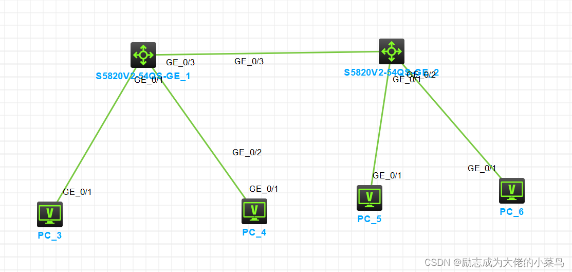查看两台交换机之间相连的端口信息SWB略,可以看到PVID是1,端口类型是trunk,允许所有vlan通过,但实际只有vlan1、vlan10 和vlan 20能通过这个端口(因为该交换机实际上只有vlan 1 vlan 10 vlan 20).PC3 PING PC5不通,是由于两台交换机之间相连的端口都属于VLAN 1 ,所以即使两台PC机所在的端口属于同一个VLAN也是无法PING通的。配置完成后再次查看vlan 10与vlan20的信息,SWA略。在交换机上创建VLAN,并将端口划分至相应的端口。.
