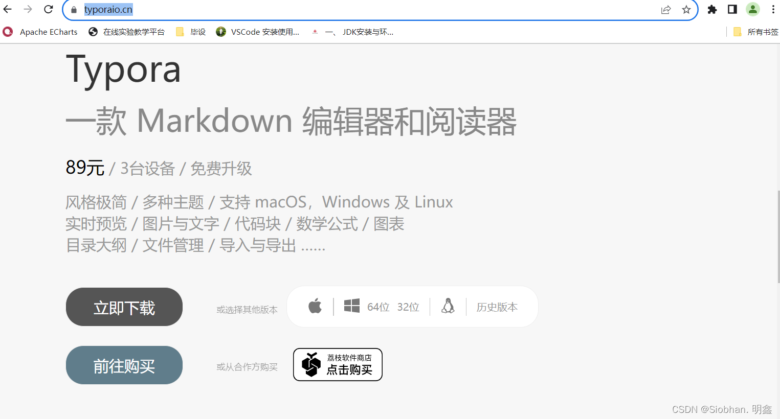 接下来给大家介绍一种无需破解的即可免费使用的,即Typora历史版本。