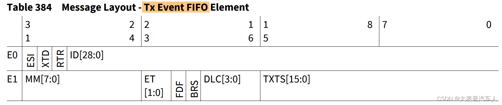 【TRICORE TC3XX】CAN发送事件FIFO(Tx Event Fifo) Tx处理程序处理专用Tx缓冲区、TxFIFO和Tx队列的传输请求控制传输消息到CAN核心、放置和获取索引以及Tx事件FIFO的传输。最多可以为消息传输设置32个Tx缓冲区。可以为每个Tx缓冲区元素单独配置传输CAN模式(经典CAN或CANFD)。