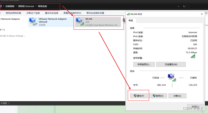 打开控制面板—>网络和Internet---->网络连接---->鼠标右键WLAN---->禁用----再右键启用