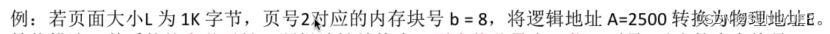 4.内存块号和页内偏移量相加得到物理地址;E=b*L+W
