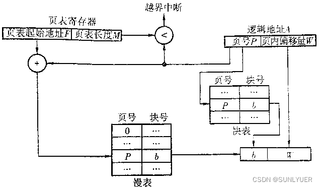 2.判断页号是否越界;若P>=M则产生越界中断