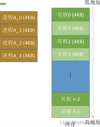 内存空间若干个与页面大小相等的块称为页框(page frame) or页帧or物理块,页框也从0开始编号;