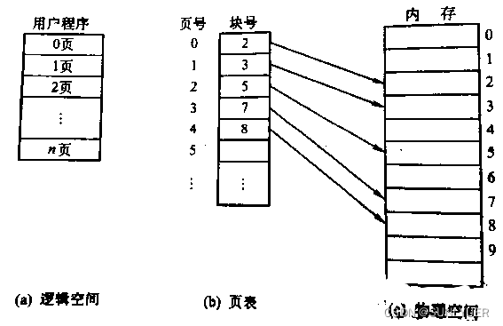 一个进程对应一张表,进程的每一页对应一个页表项(页号+块号),记录进程页面和实际存放的内存块之间的对应关系
