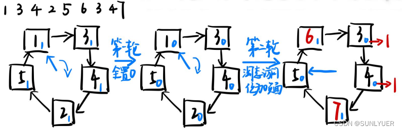 第一轮:从当前位置开始扫描到第一个(0,0)的帧(表示该页最近既未被访问,又未被修改,是最佳淘汰页)用于替换。本轮扫描不修改任何标志位