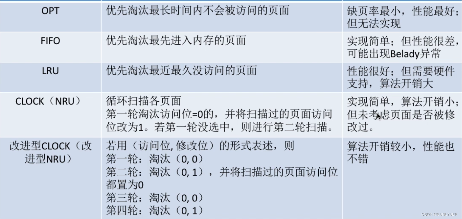 [注] :可变分配全局置换只要缺页就给分配新物理块;可变分配局部置换要根据发生缺页的频率来动态地增加或减少进程的物理块