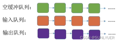 缓冲池由系统中共用的缓冲区组成。这些缓冲区按使用状况可以分为:空缓冲队列、装满输入数据的缓冲队列(输入队列)、装满输出数据的缓冲队列(输出队列)。