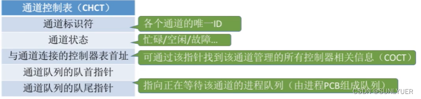 ③通道控制表CHCT:每个通道都会对应一张CHCT,OS根据CHCT的信息对通道进行操作管理