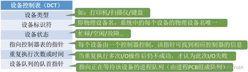 ①设备控制表DCT:系统为每个设备配置一张DCT,表中的表项就是设备的各个属性