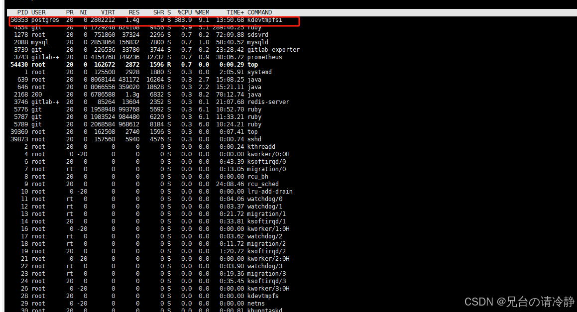 pg kdevtmpfsi挖矿病毒处理 自己用废弃笔记本做了一个本地pg数据库,但是某一天笔记本风扇飞转,对于平时不怎么使用的服务器来说,这是一件很神奇的事情。top一下,好家伙,postgres有一个进程cpu给我感到了300多,进程名字kdevtmpfsi。