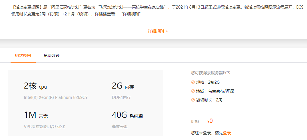 本次实践推荐使用一台装载Ubuntu镜像的云服务器,在阿里云的试用中心可以免费使用一个月t5实例:阿里云试用中心_云服务器试用_企业试用场景_开发者云产品试用