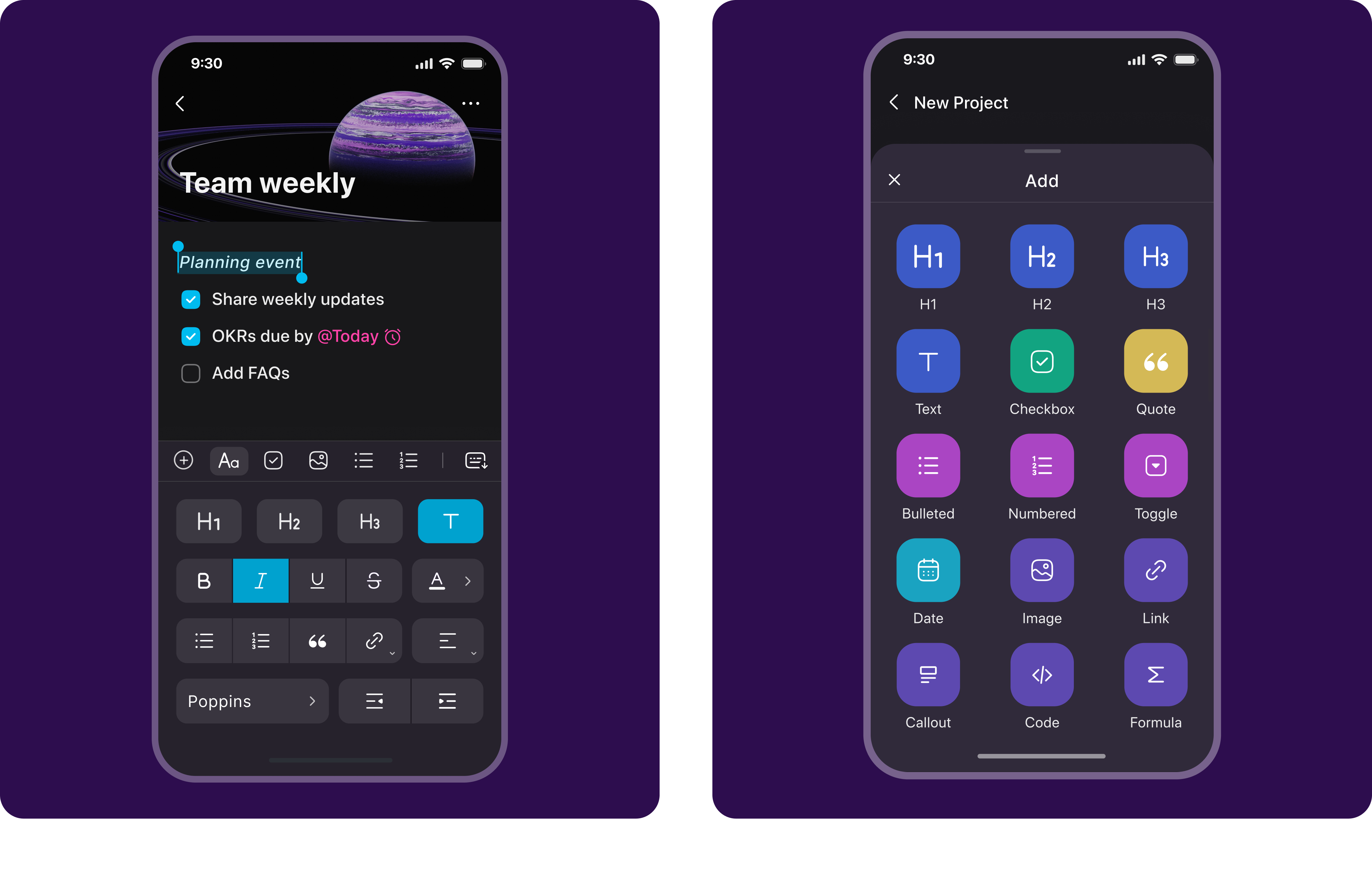 用户可以根据需要设置看板、待办事项列表、文档笔记等模块。通过拖拽的方式,轻松安排和组织信息。AppFlowy 的灵活性允许你根据工作流程调整界面和工具。 -