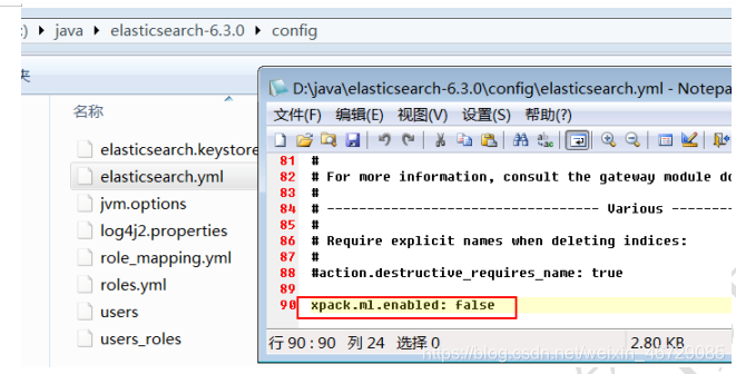 - 修改config\ elasticsearch.yml文件,添加如下内容
